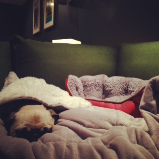 ナナさんがど真ん中で場所を陣取っても、下僕の飼い主&サブ飼い主共にゆったり座れるよ。
