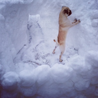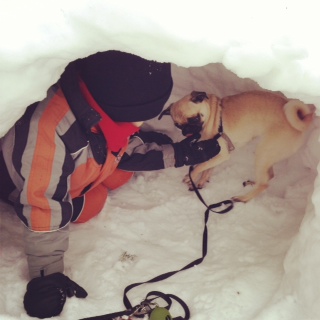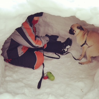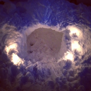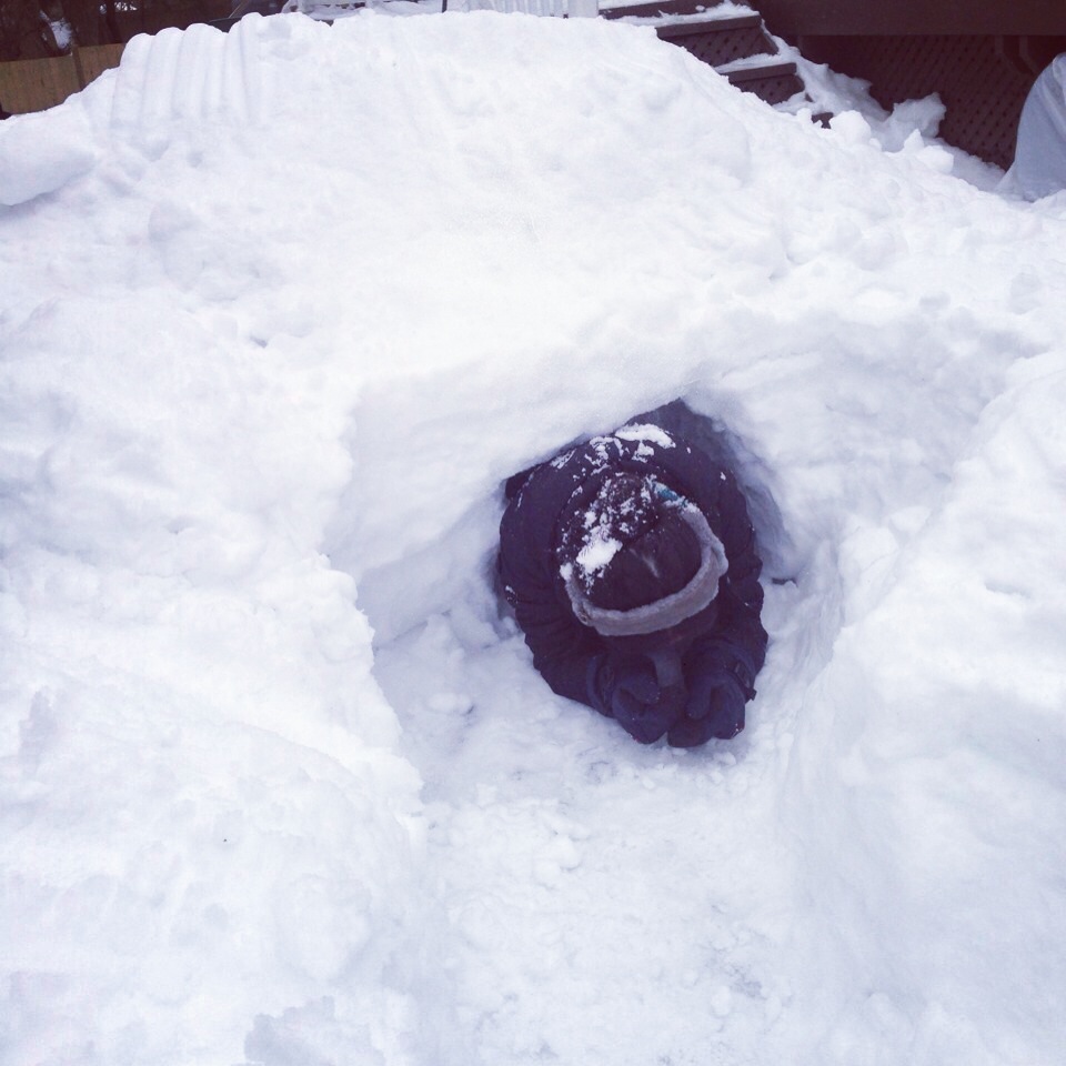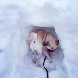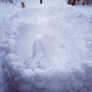これで調子に乗った飼い主は、バックヤードにももっと巨大なかまくら?お城?を作ってみましたよ。