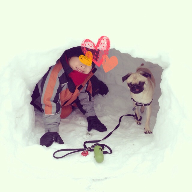 ナナさんは大きいサイズのかまくらに、甥っ子と入る方がよいらしい。