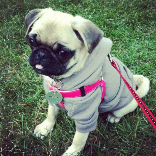 そうそう、他のパグちゃんに会うとナナさんの顔が小さすぎてびっくりします。べっぴんさんだなんて(きゃー)、ナナさん照れます。