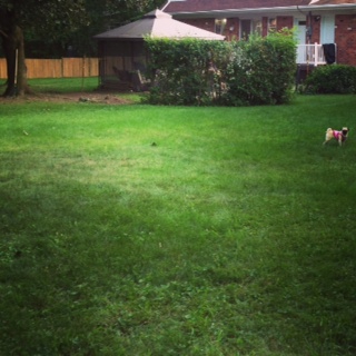 お出かけしなくても、ナナさん専用ドッグランで遊べるね!