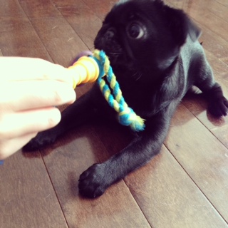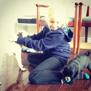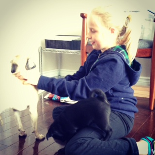 パグズが大好きな彼女、ナナさんの扱いも慣れたもの。