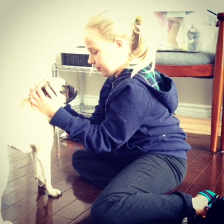 子供たちにお顔を触られても、抱っこされて連れ去られても、必ずじーーーっとしているナナさんは、本当にセラピードッグになれるかもしれません。