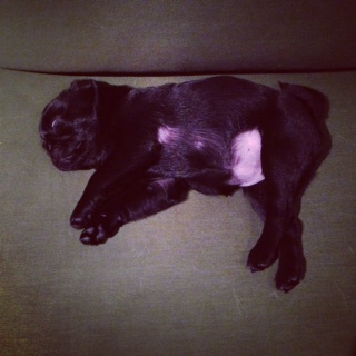 やっぱり、うるまくんも同じ体勢で寝てますか~。我が家は、このポジションか仰向けが多いです。
