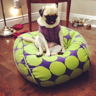 ナナさん、あのビーズクッションの沈み具合が丁度いいのかな?と思います。しーちゃん家なら、なっつんのを横取りするのがめいちゃんかな?
