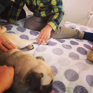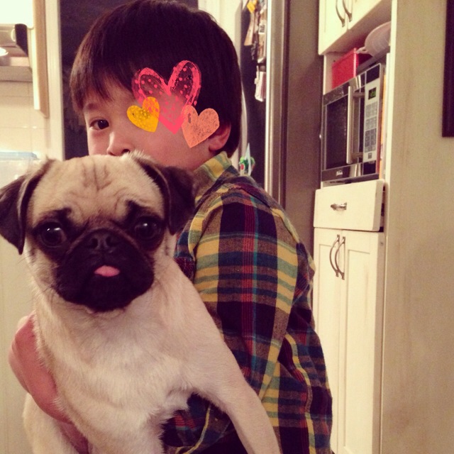 最初は「犬が恐い・・・」と半べそだった甥っ子も、着々とパグの魅力に取り憑かれてしまいました。