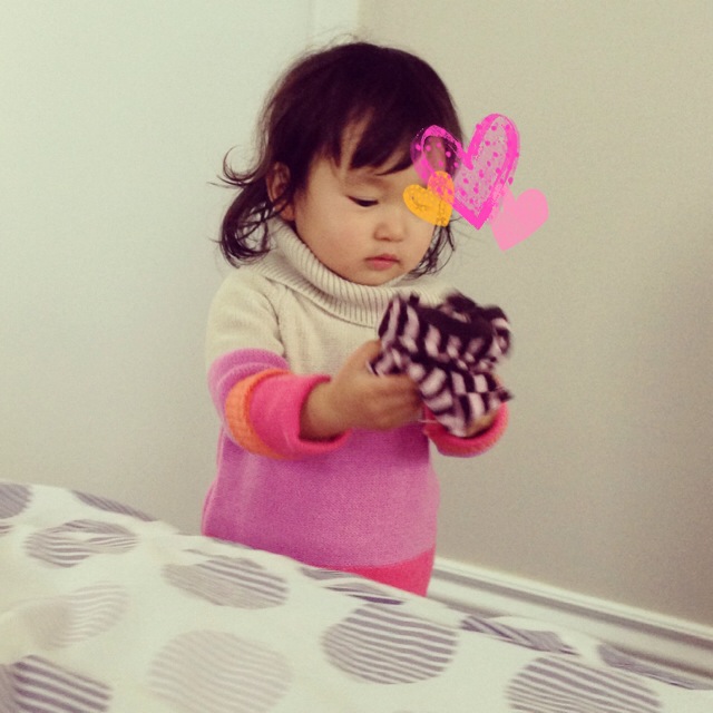 ナナさんのお洋服をたたんだり、「かわいいね」と言いながらなでなでしたり・・・。