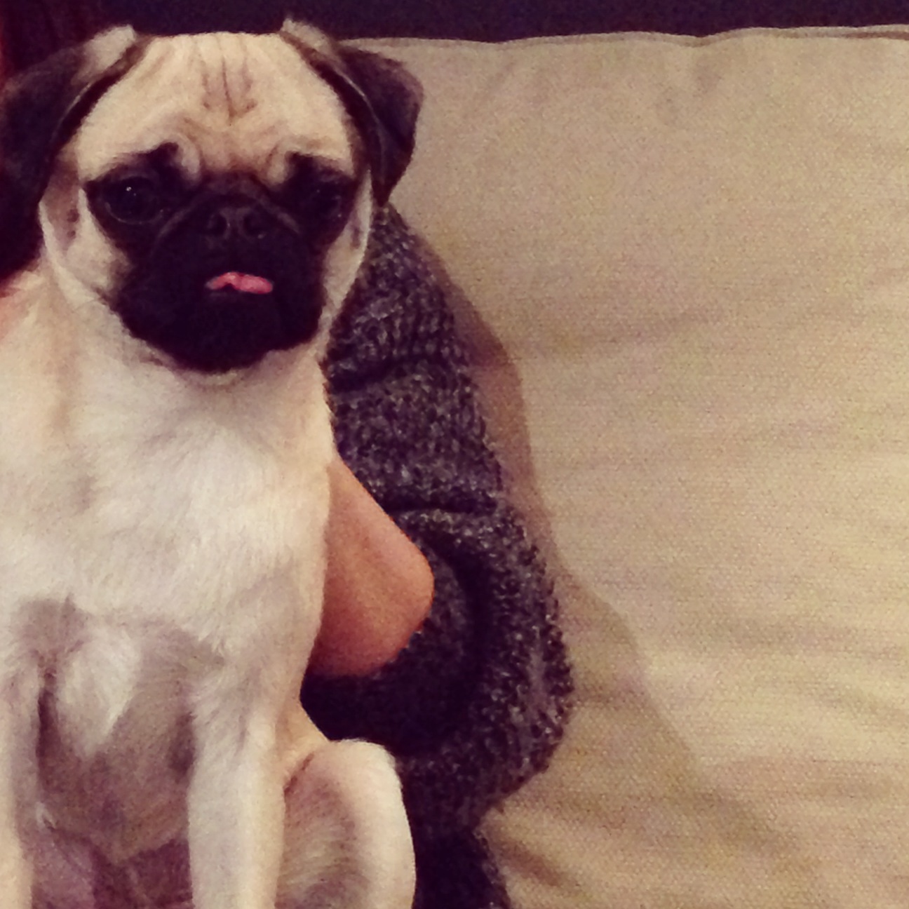 室内でのナナさんお気に入りは、飼い主母の膝の上。