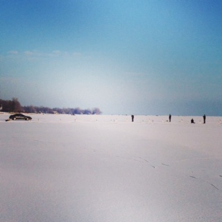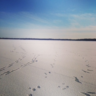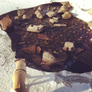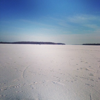 対岸で湧き水が沸いているところは、氷が少し溶けていました。それにしても、凍ったセントローレンス川を歩くって神秘的&感動です。
