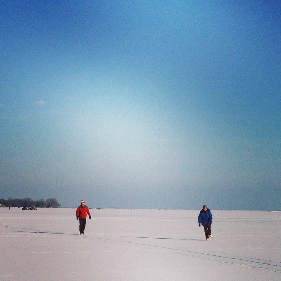 こちらのご夫婦は、凍った川の上でアイススケート中でした。