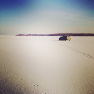 みなさん車を好きなスポットに停め、アイスフィッシングらしーです。