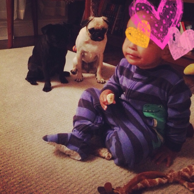 こちらに来た当初はパグズのことを「クロちゃん!(実家のワンコはクロエ)」と呼んでいた甥っ子くんですが、滞在数日で「ナナ!」ときちんと名前を呼べるようになりました。残念ながらジャズミンは難しくて言いづらいため、最後まで「クロちゃん」でした。