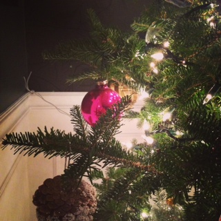転倒時にオーナメントが壊れてしまったので、ピンクのキャンディケインで空いたスペースを埋めました。以前よりも、さらにガーリーなツリーの出来上がり〜。