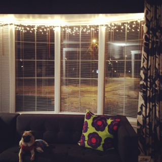 窓にもライトを飾り、クリスマスの雰囲気アップです。