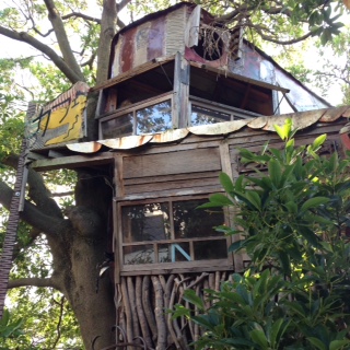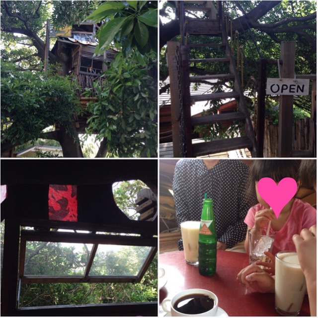 高台にそびえる大木に建てられたツリーハウスのカフェ。テラス席が一杯だったので、飼い主たちはツリーハウス内の屋根裏席にお邪魔しました。子供たちは「秘密基地みたい!!!」と大興奮。ツリーハウス、我が家のバックヤードにも欲しくなりました。
