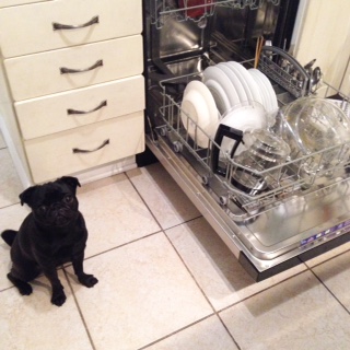 キッチンで食洗機をオープンしたまま汚れたお皿を取りにダイニングへ戻ると、ジャズはこっそり近づき、食洗機の内側ドアや食器を舐めていることが多々あります。ナナさんには拾い食いの問題がありますが、こういうことは一切しませんので驚きました ((((((ノ゚⊿゚)ノヌオォォォ