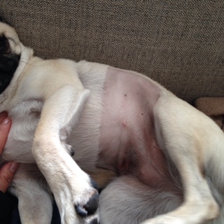 ・腹部に圧力をかけて検査するも、裂孔ヘルニアは確認できず。しかし、食道の一部に若干膨張を確認。液体が溜まっている模様。