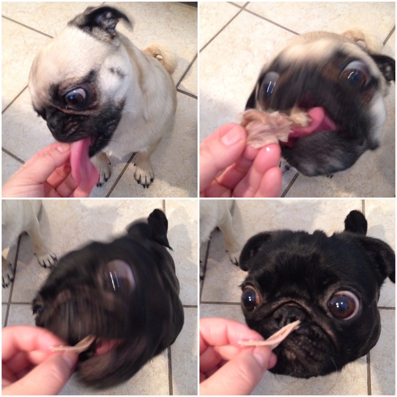 ・(ナナさんを)立たせた状態でまずはバリウムのみを飲ませ、食道造影を実施。その後缶フード、ドライフードを順番に食べさせる。