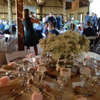 ラスティック・ウェディングやシャビーシック・ウェディングに見られるもうひとつの特徴は、自然に囲まれた会場ですネ。この日もまさに!ラスティック・ウェディングのド定番、農場の巨大な納屋(Barn)が披露宴会場でした。