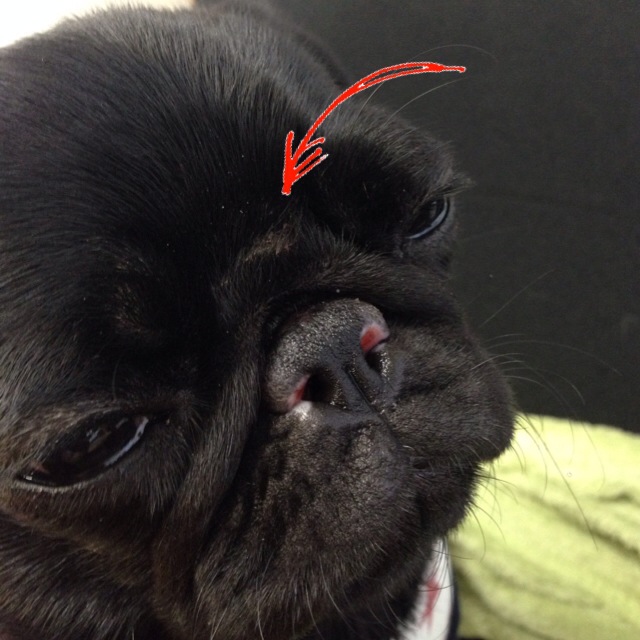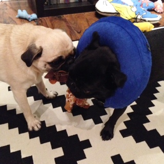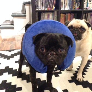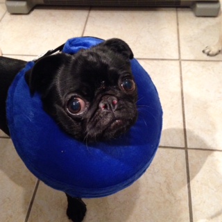 お薬を塗っているおでこを引っ掻いてしまうため、お初なエリザベス・カラー導入となりました。