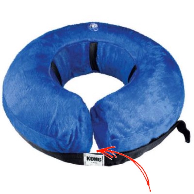 KongのCloud Collarというタイプを購入です。空気を入れて膨らませ、マジックテープで調整します。カバーは取り外して洗濯することが出来、飛行機で使用するネックピローにとてもよく似ています。