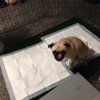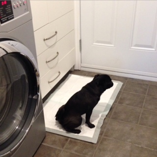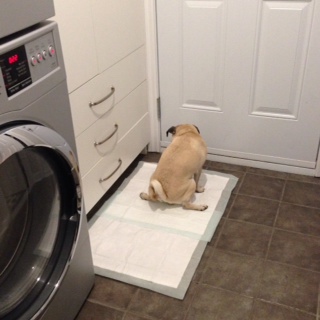 通常は朝起きると、ナナさんはガレージのトイレシートでおしっこをします。この日は飼い主が就寝前にトイレシートを交換しておらず「ナナさん、トイレシートを交換するからちょっと待っててね〜」とガレージでごそごそしていたところ・・・勝手に室内トイレシートでおしっこを済ませていたナナ姐さん(ノ´▽`)ノオオオオッ♪