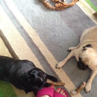 飼い主が帰宅すれば、おパグさんたちは若干拗ね気味ながらも大歓迎してくれますョ。