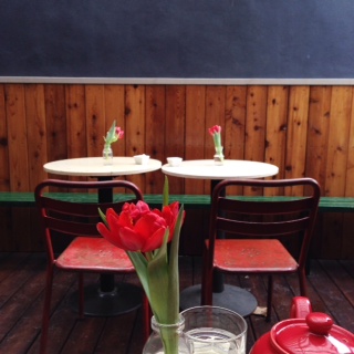 飼い主たちは予約をしていなかったのでテラス席でのお食事となりましたが、シャビーシックな感じで雰囲気が異なりますネ。