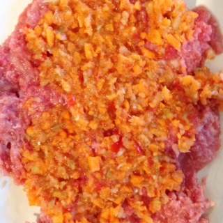 お肉の量を減らした分、お野菜&果物でカサを増やします。