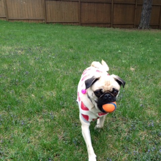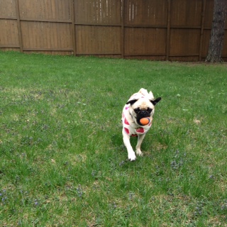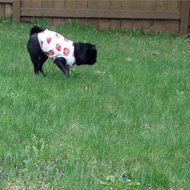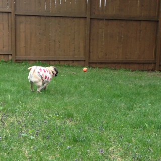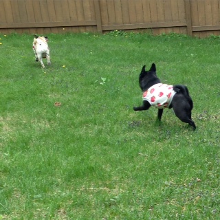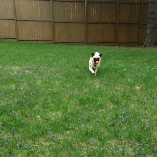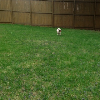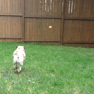 ランチタイムには飼い主が帰宅しますので、トイレを兼ねてバックヤードで走ります。