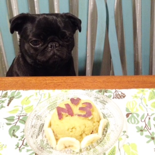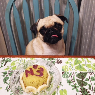 このあと、一心不乱にお顔をさつまいもだらけにしたおパグさん。半分は残してあるので、また明日食べようネ!