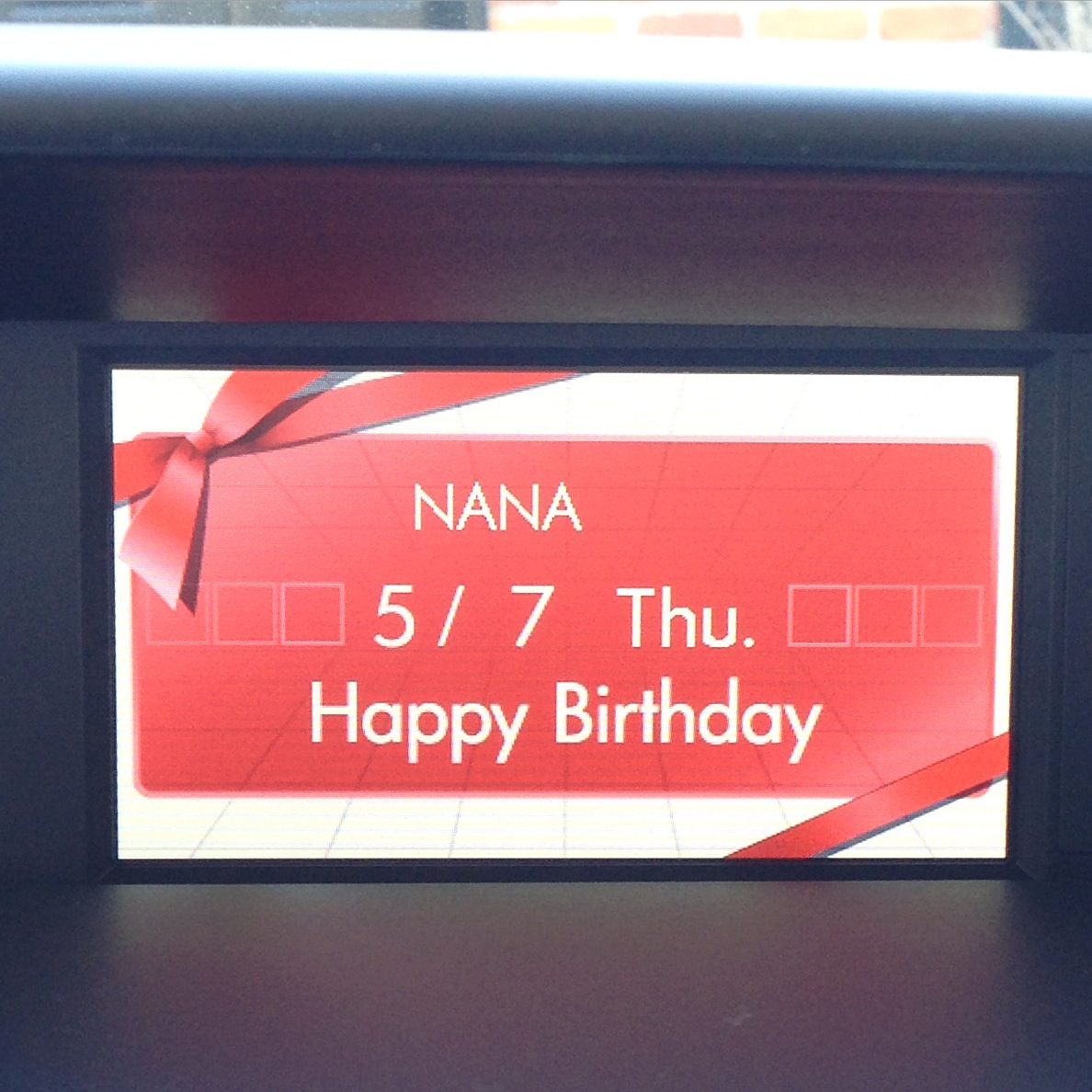 お誕生日を登録しておくと、1週間ほど前から(エンジンをかけるたびに)リマインダーのメッセージがポップアップしてくれます。