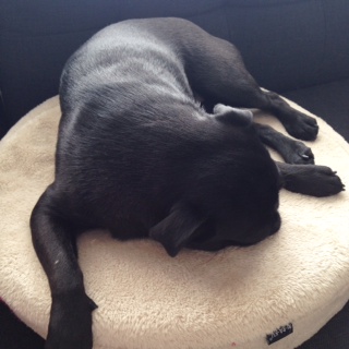 みんなが帰った後は、即爆睡です。Yogiのおかげで、ナナさん&ジャズ子の運動不足も解消になったかな?