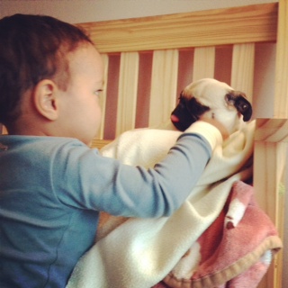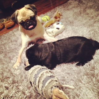 ジャズミンは、初めて面識のないパグちゃんに会ったね!(