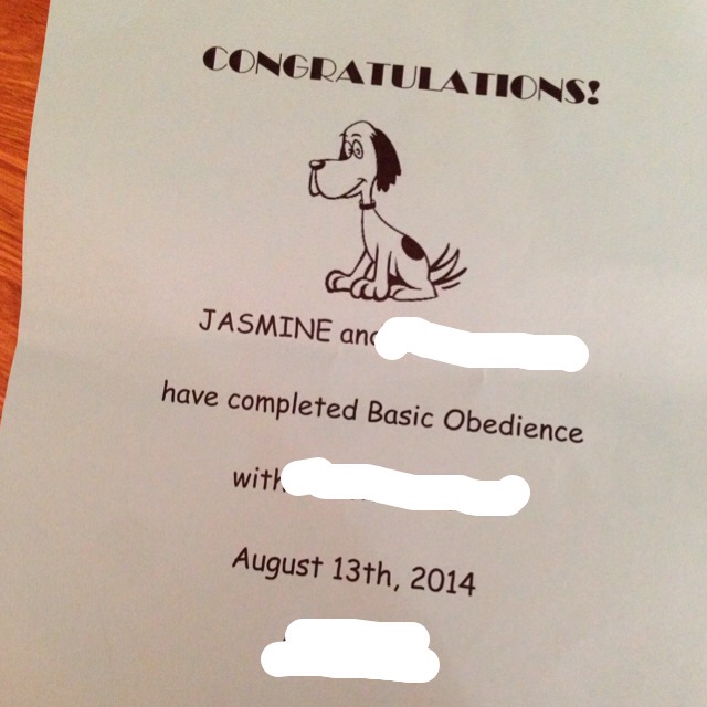 遊んでばかりじゃあありません。ジャズミン、ベーシック・トレーニングクラスを卒業です(〃'∇'〃)ゝエヘヘ(