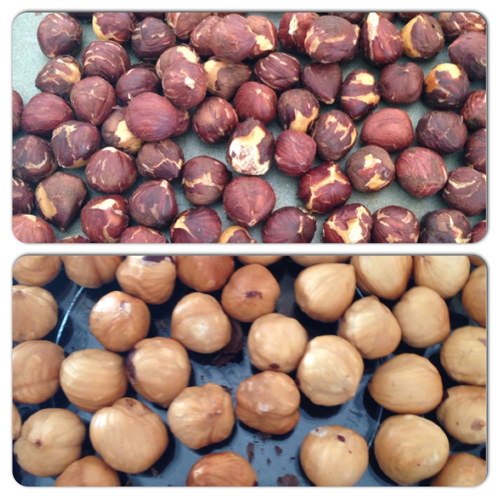 午前10時に集合し、まずはヘーゼルナッツをローストしてから皮を剥いたり、アーモンドをさっと湯通ししてまたまた皮を剥いたりと、地味な作業からすすめていきます。
