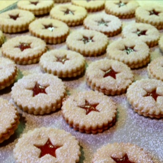 Spitzbuebe (Swiss Sandwich Cookies) は、ラズベリージャムをはさんだクッキーです。今回はラズベリーとアプリコットの2種類を焼きました。