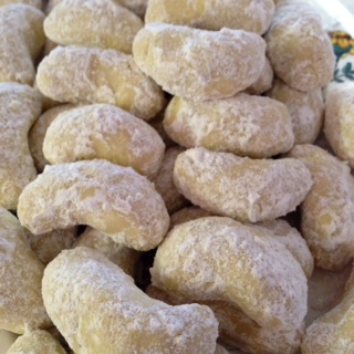 Vanillekipferl (Vanilla Almond Cookies)は、アーモンドの粉末をミックスしたクッキー生地を焼いてから、仕上げに粉砂糖をまぶします。このクッキーは、ほろほろふわっとお口の中で崩れます。