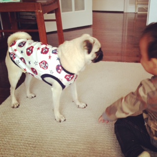 女の人が大好きで(しかも常ににこにこしているので、みんなからも大人気)、ショップ店員さんともすぐ仲良しになってしまいます。